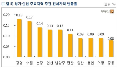 또한 "서울의 전셋값이 크게 오르면서 세입자들이 외곽지역으로 이동하는 경우가 많아 수도권 아파트의 전세 오름세도 다소 커질 것으로 보인다"고 전했다.