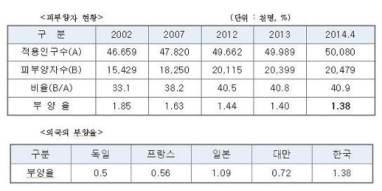개다가 현재 피부양자 규모는 전체 가입자의 40%(2,023만명)로, 보험료를 내지 않고 건강보험 혜택을 받는 비율이 절반에 육박한다.