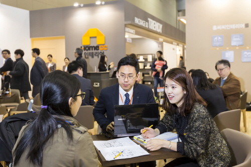 | ▲ 지난 2월 일산킨텍스에서 열린 경향하우징페어에서 고객상담 중인 홈씨씨인테리어의 인테리어플래너. | ||