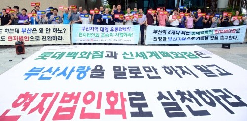 이어 “롯데그룹은 지금 부산에서의 백화점과 대형마트로 벌어들인 돈을 본사로 빼가는 부산지역경제 블랙홀로 작용하고 있다”며 “부산경제가 걱정된다면 부산지역 경제의 블랙홀인 백화점, 대형마트 등을 현지법인화 시켜라”라고 강조했다.