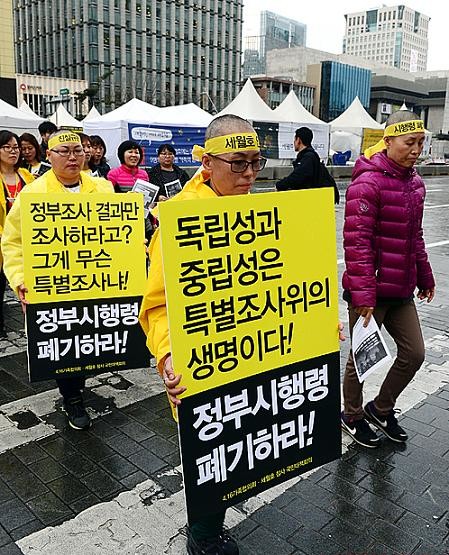 유가족 백오십여 명은 배상과 보상보다는 선체 인양을 통한 실종자 완전 수습과 진상 규명이 우선이라고 목소리를 높였다. 또한 최근 입법 예고한 특별법 시행령안이 조사위원회의 독립성을 훼손한다며 폐기하라고 요구했다.