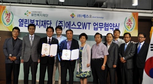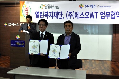 16일 서울 금천구 가산동 스타밸리 3층에서 오전 11시에 진행된 이번 행사에서 ㈜에스오W.T는 사회복지법인인 열린복지재단과 MOU를 체결했다. 이번 행사는 내빈소개, 환영사와 축사, MOU체결 등의 순으로 진행됐다.