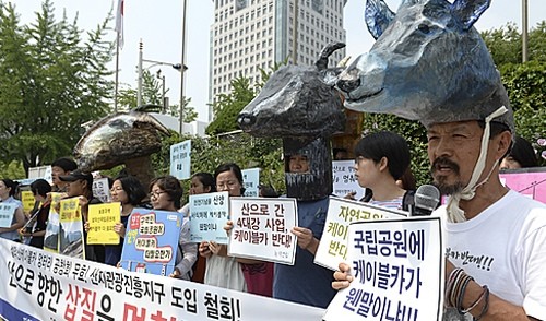 이들은 “정부가 지난 9일 발표한 관광산업육성대책 중 산림관광 활성화 대책은 국토의 65%에 해당하는 산림을 국가가 나서서 철저히 파헤치겠다는 발상”이라며 “케이블카를 시작으로 전국의 산이 위협받고 있다”고 목소리를 높였다.