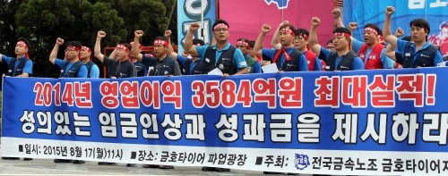한편 금호타이어는 지주회사인 금호아시아나그룹의 유동성 악화 등으로 2009년 12월 워크아웃을 신청해 지난해 말 5년 만에 졸업했다. 그러나 이후 임금 삭감과 정리 해고 등으로 노사와 갈등을 겪어왔다.