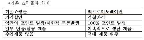 백프로이노베이션 쇼핑몰은 정상적인 소비자 가격을 준수하고 유통수수료 일부를 포인트로 100%로 소비자에게 돌려준다.