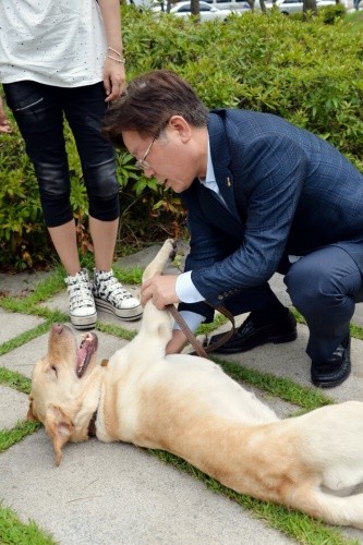 당시 이재명 성남시장은 행복이의 안타까운 사연을 전해 듣고 유기견 행복이를 입양했다. 현재 행복이는 유기견 입양 홍보 도우미로 활동하며 급증하고 있는 반려동물의 유기 문제에 관한 경각심을 높이는데 좋은 본보기가 되고 있다. 성남지역에서 연간 2,000여 마리의 유기견이 발견되고 있다. 이에 시는 유기견에 대한 보호 및 안락사 처리 비용 등으로 매년 100억 원에 달하는 예산을 투입하고 있다. 시는 탄천 주변에 반려동물 놀이터 운영, 펫 페스티벌 등 다양한 반려동물 정책을 펼치고 있으며 앞으로 동물보호문화센터 건립을 통해 유기견 입양 알선, 유기동물 보호 등 각종 애견 인프라를 확장할 계획이다. <펫폴 매거진>은 이재명 성남시장을 만나 그의 남다른 반려동물 사랑 배경과 현재 진행 중인 반려동물 관련 각종 정책에 대해 들어봤다.