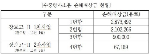 안 의원이 해군본부로부터 제출받은 국감 자료에 따르면 방사청과 독일 업체 간 계약서에 따라 장보고-Ⅱ 1차 사업 3척과 2차 사업 1척의 수중방사소음 기준 초과에 대한 손해배상금으로 각각 2012년 1월과 2015년 3월 두 차례에 걸쳐 약 6백만 유로(5,942,927유로)를 국고 환수한 것으로 확인됐다.