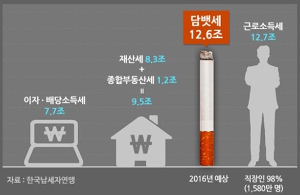 더 나아가 내년 정부가 추산한 담뱃세 규모는 우리나라 직장인 98%가 납부하는 근로소득세와 맞먹는 수준일 것이라는 분석이 나왔다.