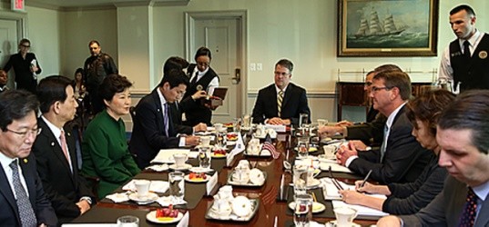 국방부는 박근혜 대통령의 미국 방문을 수행 중에 있는 한민구 국방부 장관이 지난 15일 (현지시간) 카터 장관을 만나 미국 정부가 지난 4월 기술 이전을 공식 거부한 AESA(에이사) 레이더 등 4개 핵심 기술 이전을 요청했다고 밝혔다.