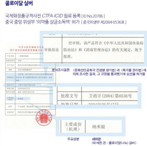 由韩国浦项工科大学研究所专家教授苦心研发出对细菌、病毒起到强力抗菌以及杀菌作用的天然抗生剂-胶性纳米银,已获得了国内外专利, 使用该天然抗生剂的新产品也获得了权威部门的认证。