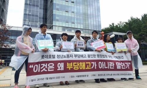 이에 대해 청년유니온 측은 “호텔롯데는 비용절감을 위해 언제라도 손쉽게 해고할 수 있는 일용직 근로계약을 무분별하게 활용하고 있다”며 “더욱이 이들을 무더기 해고하면서 부당한 합의도 종용했다”고 지적했다.