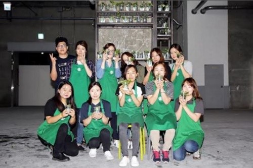 지난 8월부터 시작된 이 작업에는 스타벅스 충북지점 자원봉사자들이 참여했다. 봉사자들은 매주 수요일마다 비엔날레 전시관 2층 휴게공간에서 화분 가꾸기 작업을 했다. 또 스타벅스는 지난 10월 10일 비엔날레 전시관 워크숍 공간에서 열린 알랭 드 보통 특별전 참여작가인 ‘가든하다’ 워크숍 참가자 70여명에게 무료로 커피를 증정하는 문화공헌활동을 했다.