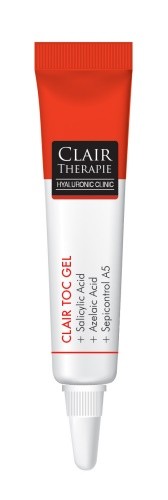 클레어톡겔에 함유된 천연성분(화이트윌로우껍질추출물)이 피지와 각질을 케어하고, 피부진정 작용을 하는 아젤라익애씨드, 피지생성을 줄여주는 Sepicontrol A5(프랑스 특허 성분)가 단계적으로 작용한다.