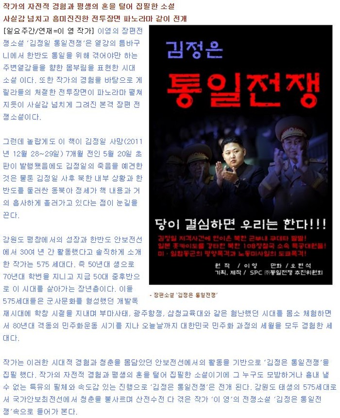 “지리적 여건과 북한 해상 전력의 능력이 그 이유죠. 북한은 아마 한국을 공격할 구실을 마련할 것입니다. 그것도 단 기간에 허를 찌른 뒤 미국과 협상을 요구하며 자신들의 요구를 관철시키려 하겠죠.”
