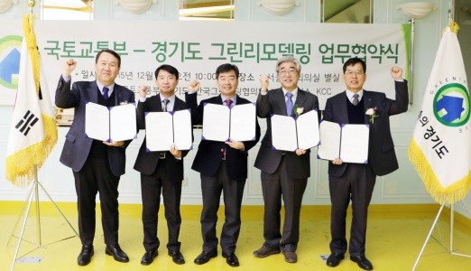 KCC는 8일 서울 중구 서울역 한국시설안전공단 회의실에서 개최된 국토교통부, 경기도와의 그린리모델링 협약식(MOU)에 참석해 경기도 노후건축물 개선사업 등 경기도 녹색 도시 조성에 지원을 아끼지 않을 것을 약속했다.