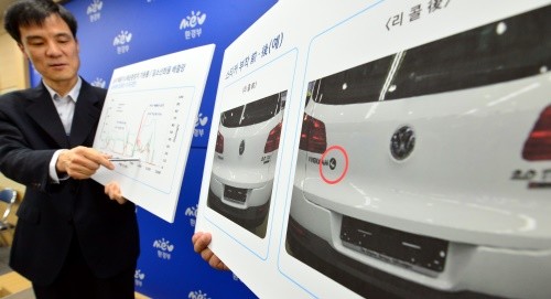 | ▲ 지난 11월 26일 홍동곤 환경부 교통환경과장이 국내에서 판매된 폭스바겐 경유차 검사한 결과를 발표했다. 환경부는 임의설정이 적발된 구형 엔진 차량에 대해 판매정지와 리콜, 인증취소, 과징금 등의 조치를 취했다.ⓒNewsis | ||