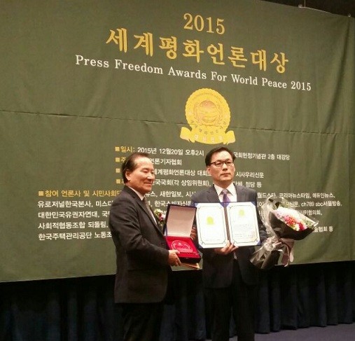 2015 세계언론평화대상조직위는 지구촌의 언론자유와 인류평화에 공헌한 기자, 기업, 단체 등 사회 각 12개 부문 분야에서 탁월한 업적을 이뤄 국가와 지역 발전에 기여한 공로자를 선정해 시상식을 가졌다고 밝혔다.