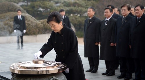 | ▲ 박근혜 대통령이 새해를 맞아 국무위원들과 함께 국립현충원을 찾아 참배, 분향을 하고 있다. ⓒNewsis | ||