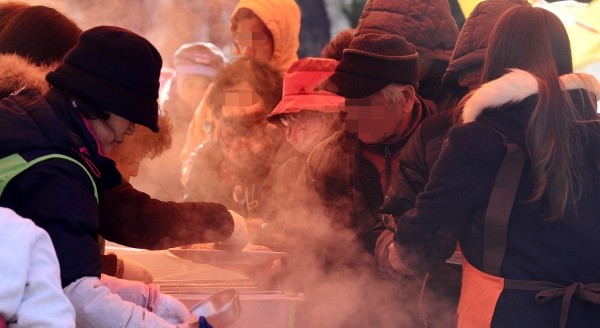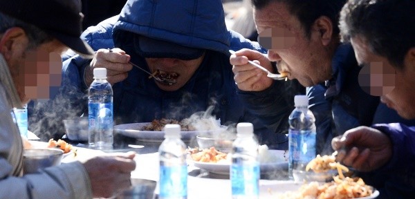 한파가 닥치면 야외 무료급식소에는 긴행렬이 이어진다. 따뜻한 밥 한끼를 해결하려는 노숙인과 노인 등이 줄지어 서서 배급을 받기 때문이다.