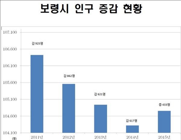 이는 지난해 연초 대비 433명이 증가한 것으로, 2014년 감소했던 인구수까지 합치면 실제 증가한 인구는 1,050명에 달해 활력 넘치는 지역 발전과 자족도시로써 성장할 수 있는 기틀을 마련하게 됐다. 이러한 인구 증가 사유로는 한국중부발전 본사 이전, 신보령 1・2호기 및 GS LNG터미널 건설 등의 외적 요인과 공직자 1인당 5인 이상 전입 유도하기의 내적요인의 상호작용을 통해 증가한 것으로 분석된다.