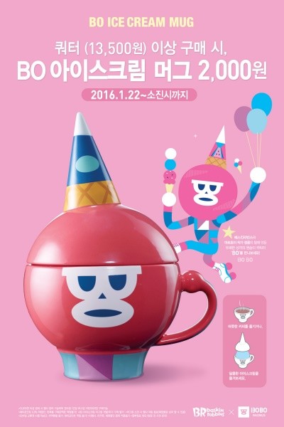 SPC 계열사인 배스킨라빈스가 1만 3,500원 이상 구매 고객에게 아트토이 작가 정웅이 만든 원숭이 얼굴을 형상화 한 캐릭터가 새겨진 ‘BO 아이스크림 머그’를 2,000원에 증정하는 프로모션을 22일부터 제품 소진 시까지 진행한다고 밝혔다.