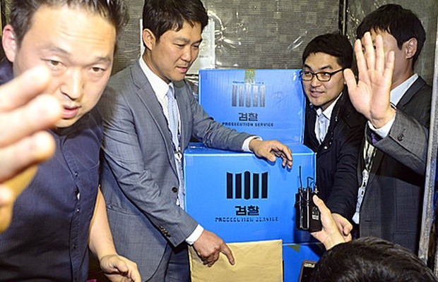 ▲ '정운호 게이트'를 수사하고 있는 검찰이 10일 서울 서초구 검사장 출신 H 변호사의 사무실을 압수수색한 뒤 압수품을 옮기고 있다. H 변호사는 지난 2014년 네이처리퍼블릭 정운호(51) 대표의 해외 원정 도박 혐의에 대해 경찰과 검찰에서 무혐의를 이끌어 낸 것으로 알려졌다. ⓒNewsis
