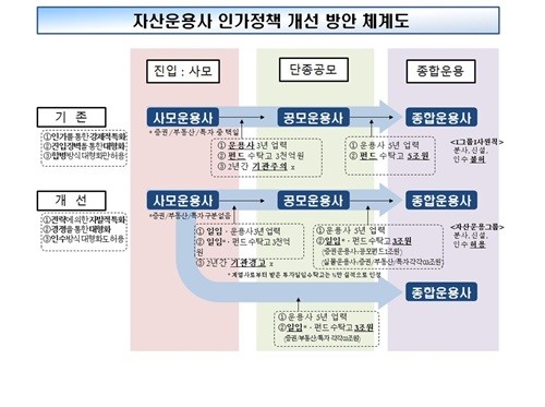 사모운영사는 업력과 수탁고 요건만 갖추면 공모운용사 단계를 거치지 않고 곧바로 종합자산운용사로 전환할 수 있다.