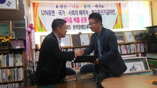 [일요주간=노현주 기자] 한국장애인새마을운동협회(중앙회장 이동기)와 (주)쏠레드는 지난달 25일 한국장애인새마을운동협회사무실에서 '새마음 베풂 운동 협약식'을 가졌다고 10일 밝혔다.