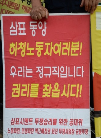 해고된 하청 노동자들과 동양시멘트 간의 분쟁이 계속되던 와중에 삼표그룹은 지난해 8월 법정관리 상태에 있던 동양시멘트를 인수했다. 물론 고용 문제 등에 대한 모든 법적 책임도 함께 넘어갔다.