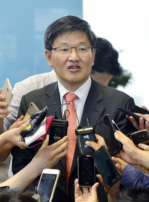 | ▲ 김충현 현대상선 CFO(최고재무책임자)가 31일 서울 연지동 현대상선에서 열린 무보증사채 사채권자집회를 마치고 취재진 질문에 답변하고 있다.ⓒ뉴시스 | ||