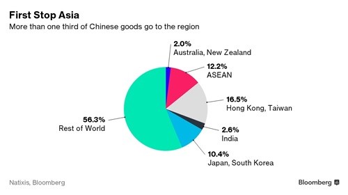 블룸버그통신은 5일(현지시간) 홍콩에 있는 프랑스계 금융회사인 나티시스(Natixis SA)의 분석을 인용해 한국과 싱가포르, 대만, 베트남, 말레이시아 등이 중국의 경제 변동이나 보복의 직격탄을 맞는 것으로 나타났다고 보도했다.