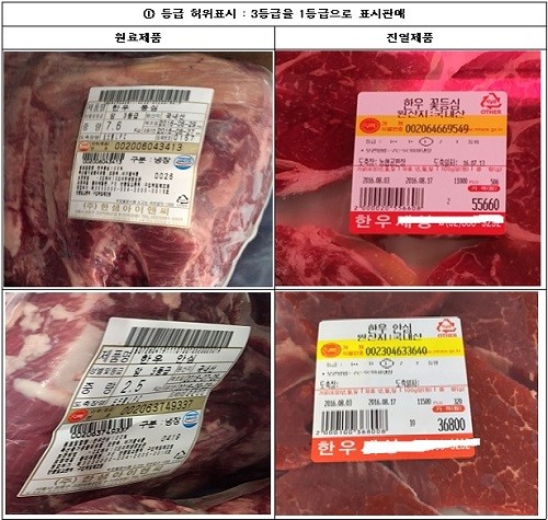 낮은 등급의 한우를 높은 등급으로 속여 판매한 등급 허위 표시 업소는 모두 6곳이었다.