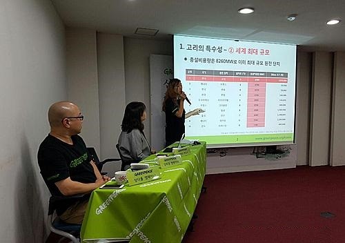 국제환경단체 그린피스 서울사무소는 18일 부산 YWCA 강당에서 기자회견을 열고 "원자력안전위원회(이하 원안위)를 상대로 신고리 5·6호기 건설허가 취소 소송을 진행할 것"이라며 "또 우리나라 국민이면 누구나 원고가 될 수 있는 국민소송단을 9월8일까지 공모한다"고 공식 발표했다.