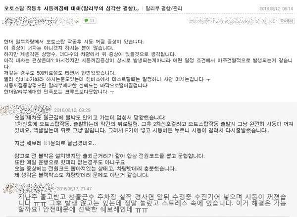 복수의 올뉴말리부 동호회를 비롯한 온라인커뮤니티에서도 말리부의 시동 꺼짐 현상을 호소하는 글들이 줄을 잇고 있다.
