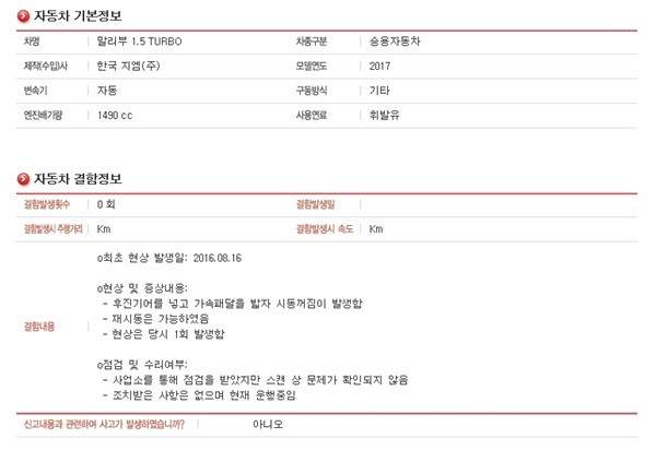 상황이 이렇게 되자 국내 자동차 관련 온라인 게시판에는 신형 말리부 1.5ℓ 터보 모델의 리콜 요구가 줄을 잇고 있다. 일부 네티즌은 “언덕에 차 세우기가 두렵다”며 리콜을 요구하는 온라인 운동을 제안하고 나섰다.