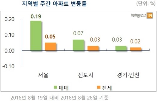 26일 부동산114에 따르면 8월 마지막 주 서울 아파트 매매가격은 0.19% 상승했다. 올해 들어 가장 높은 변동률을 보였던 6월 마지막 주와 동일한 수치다.