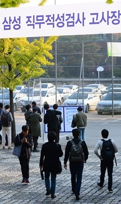 | ▲ 지난해 10월 18일 오전 서울 강남구 압구정고등학교에서 삼성그룹의 공개채용시험, '삼성직무적성검사(GSAT)'를 치르기 위한 수험생들이 고사장을 들어서고 있다. ⓒ뉴시스 | ||