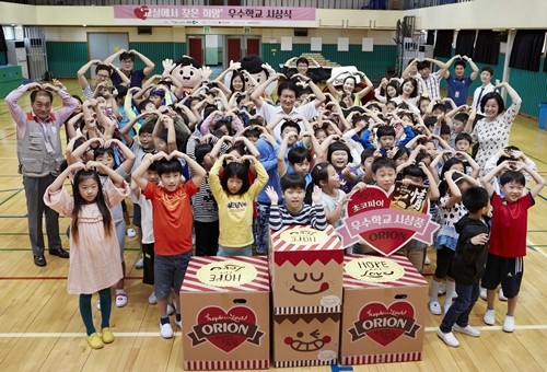 [일요주간=선초롱 기자] 오리온은 지난 29일 국제구호개발 NGO 월드비전과 함께한 학교폭력 예방 캠페인 '교실에서 찾은 희망' 우수학교 시상식을 진행했다고 30일 밝혔다. 시상식은 서울 혜화초등학교에서 진행됐다.