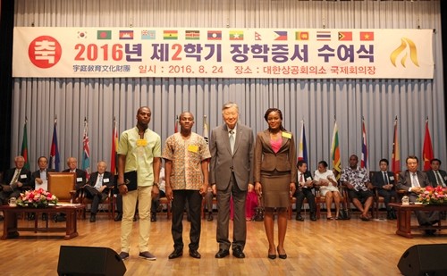 [일요주간=선초롱 기자] 부영그룹이 설립한 재단법인인 '우정교육문화재단'이 지난 24일 대한상공회의소 국제회의장에서 '2016년 2학기 해외유학생 장학금 수여식'을 갖고, 13개 국가 유학생 100명에게 총 4억원 규모의 장학금을 전달했다고 밝혔다.