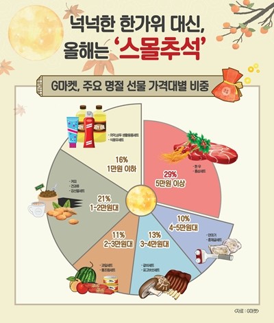 G마켓 관계자는 "불황과 사회 분위기상 유통 업계도 5만원 미만의 알뜰 선물을 중심으로 추석 프로모션을 진행하고 있다"며 "올해는 실속은 챙기면서 가격은 합리적인 명절선물이 각광 받는 스몰추석이 될 것으로 보인다"고 말했다.