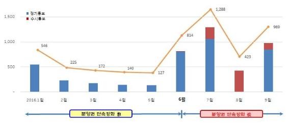 6월 말 이후 분양권 다운계약 의심사례는 지자체 통보건수가 1~5월 대비 월 평균 261% 증가했다.