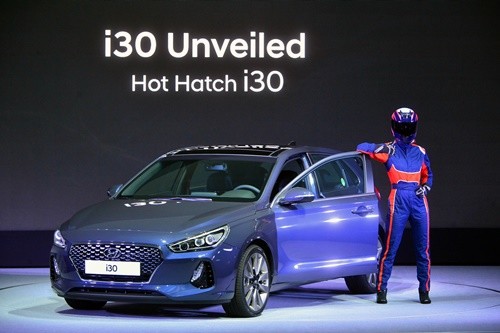 | ▲ 서울 서초구 반포동 가빛섬에서 열린 현대자동차 신형 '핫 해치(hot hatch) i30' 공식 출시 행사에서 모델이 신형 i30를 소개하고 있다.ⓒ뉴시스 | ||