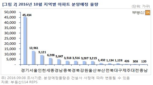 26일 부동산114에 따르면 10월 전국 아파트 분양예정 물량은 9만6855가구로 2000년 이후 10월 분양으론 최대치다.