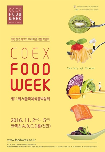 [일요주간=이수근 기자] 최신 식품 트렌드가 한 자리에 모인 '2016 서울국제식품산업전(코엑스 푸드위크 2016)'이 서울 삼성동 코엑스에서 11월 2일부터 5일까지 진행된다.