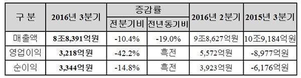 | ▲ 현대중공업 2016년 3분기 실적. | ||