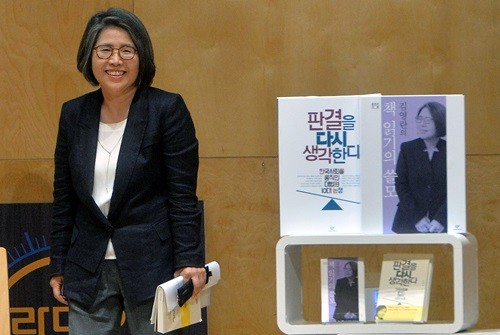 | ▲ 김영란 전 대법관(현 서강대학교 법학전문대학원 석좌교수)이 6일 오후 서울 마포구 동교동 가톨릭청년회관에서 저자 초청 대담에 참석하고 있다.ⓒ뉴시스 | ||