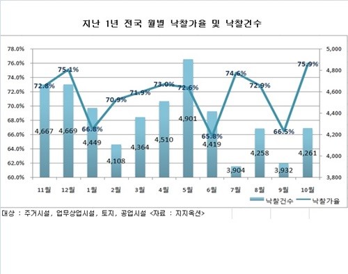 부동산경매 전국 평균 낙찰가율 75.9%로 8년만에 역대 최고