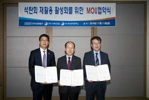 이들은 이날 협약을 통해 토목분야에 석탄회의 재활용이 가능한 사업을 공동으로 발굴, 자원이 선순환하는 자원순환사회의 토대를 만들 것으로 기대하고 있다.