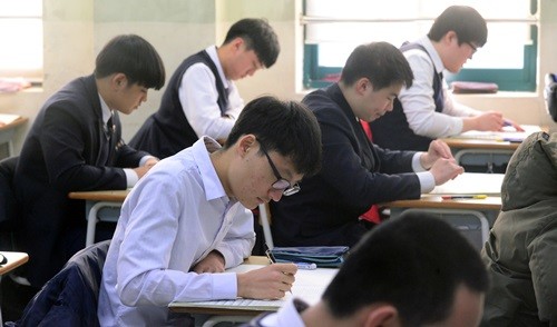 | ▲ 고등학교 1·2학년 대상 11월 전국연합학력평가가 실시된 23일 오전 서울 용산구 용산고등학교에서 학생들이 시험을 치르고 있다. ⓒ뉴시스 | ||