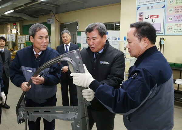 | ▲ 박인규 대구은행장(사진 가운데)이 지역 중소기업을 찾아 현장 마케팅을 하고 있다. | ||